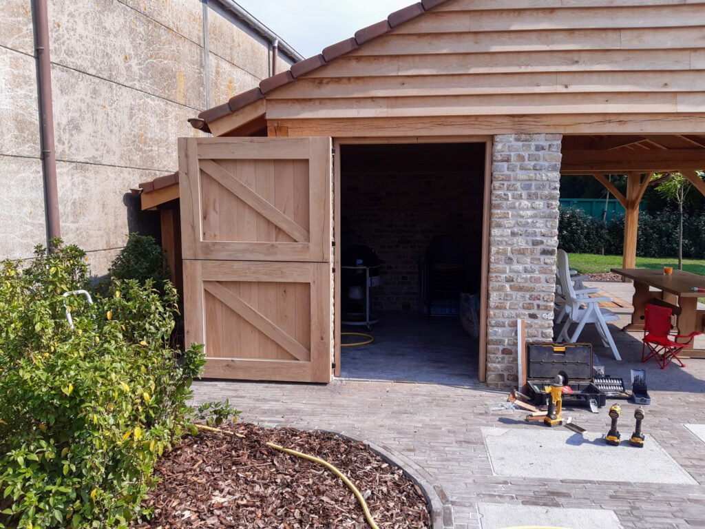 Voor dit project hebben we een bijgebouw geplaatst met een combinatie van eiken en larikshout. De stevige eiken structuur zorgt voor een robuuste basis, terwijl lariks als bekleding een warme en natuurlijke uitstraling biedt. Een duurzame oplossing die mooi aansluit bij de omgeving.