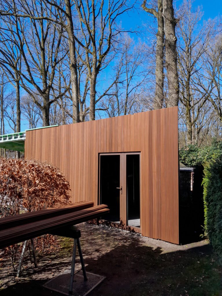 De uitstraling van een modern bijgebouw wordt sterk bepaald door het gekozen hout en de manier waarop het verwerkt wordt.